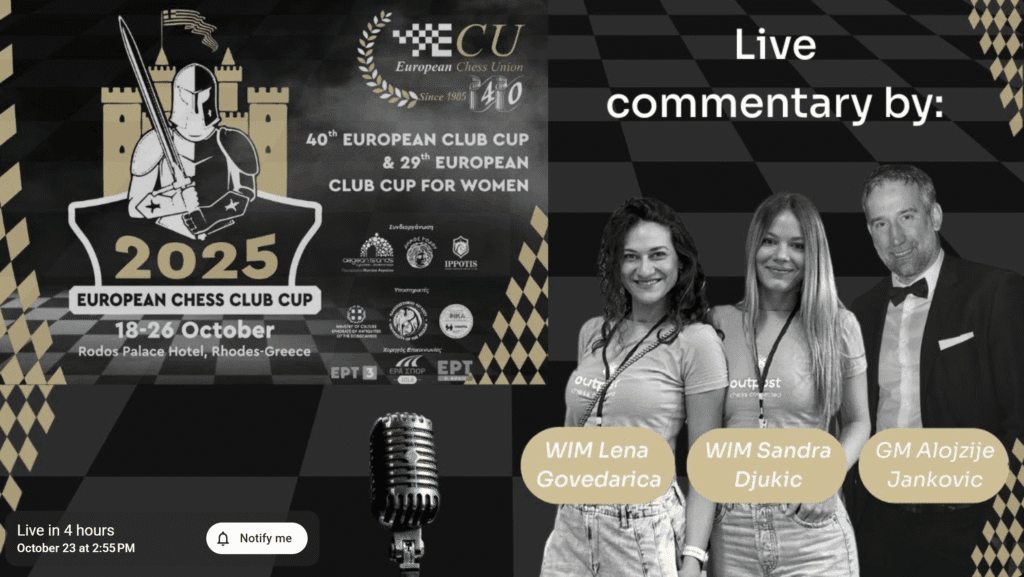 Τους αγώνες του 6ου γύρου μπορείτε να παρακολουθήσετε μέσω της πλατφόρμας Lichess και του συνδέσμου: https://lichess.org/broadcast/european-chess-club-cup-2025–open-matches-1-16/round-6/GLJOviZK#boards
